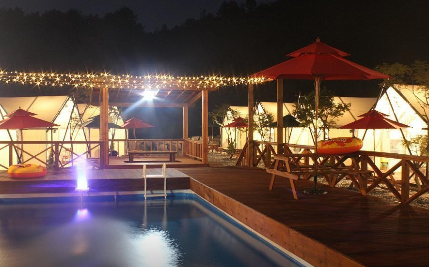 특징: 통나무 캐빈, 놀이터+풀장, 반려견 체험 클래스 운영
